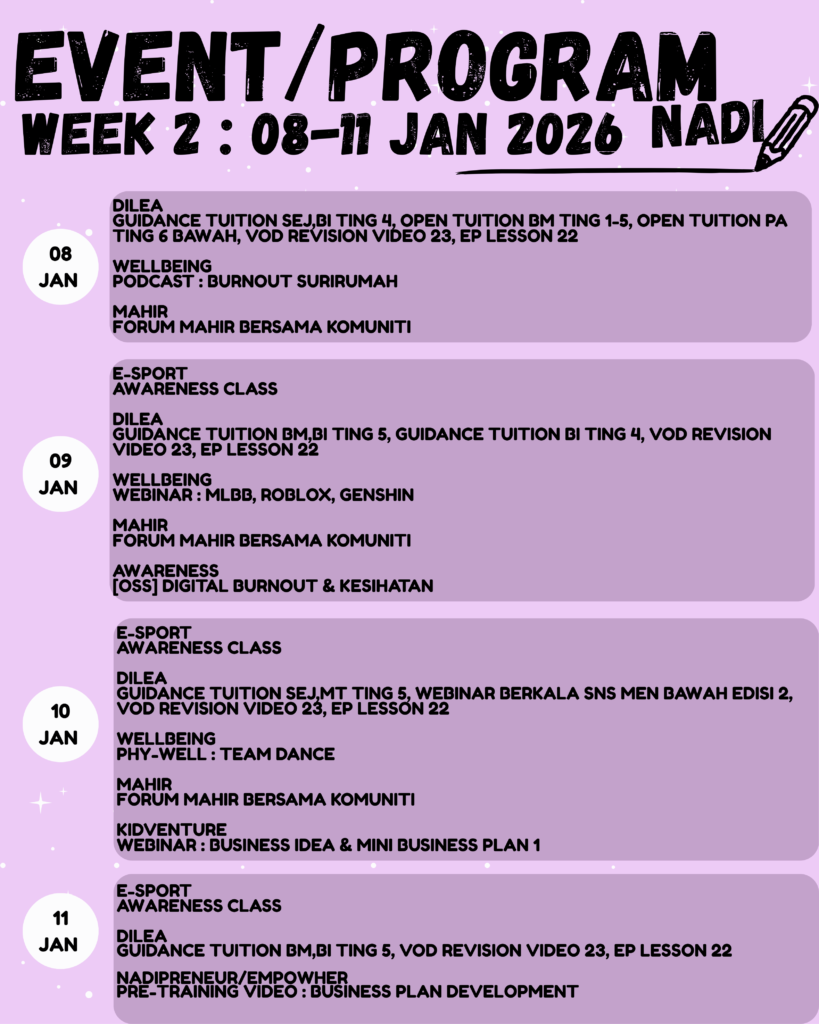 JADUAL AKTIVITI JANUARI 2026 NADI FELDA PASOH 4 WEEK 2 (8 – 11 JAN)